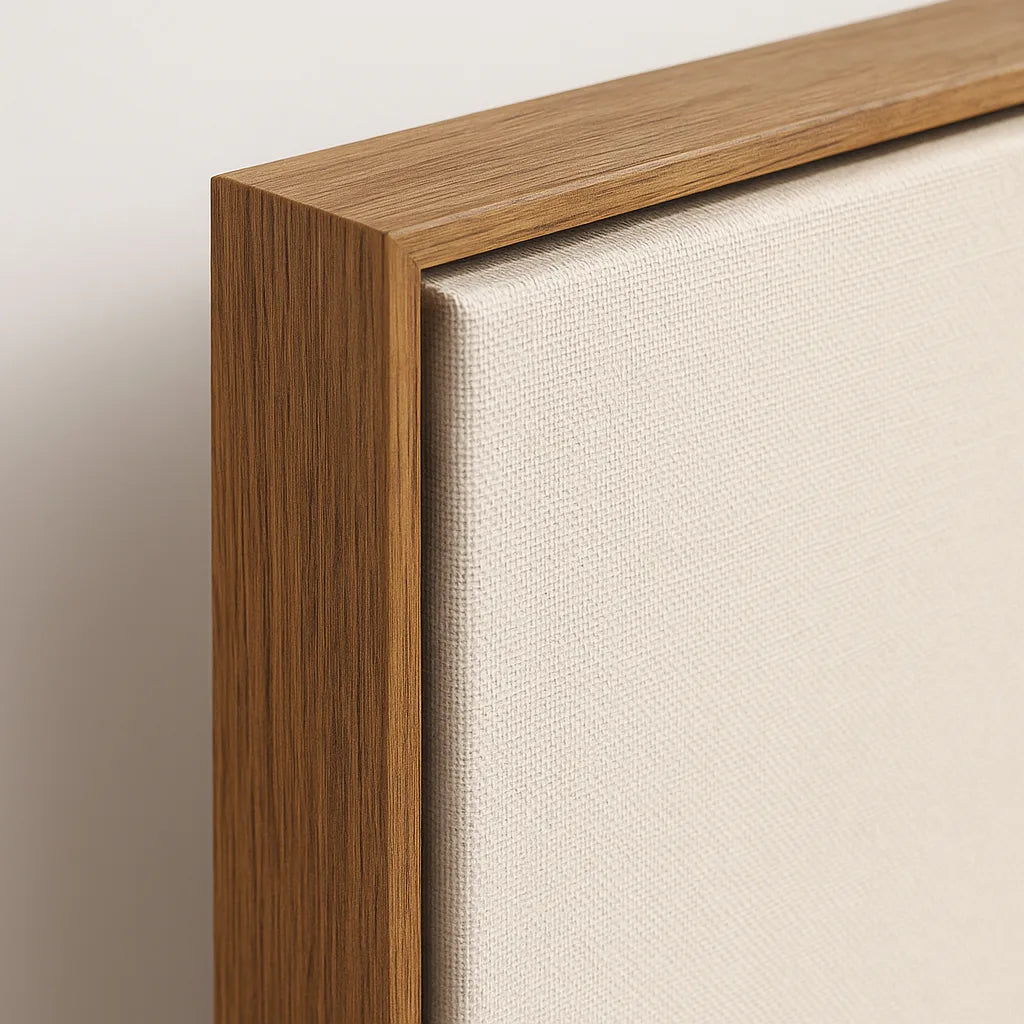 Exclusive art prints produced on 300 g/m² cotton canvas, hand-stretched over a solid pine wooden frame. Each piece is finished with an elegant floating frame, giving it a modern, gallery-quality look.