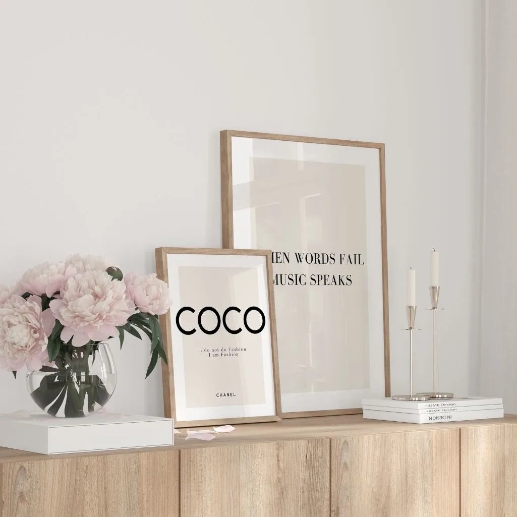 When Words Fail Music Speaks Poster is minimalist typographic wall art featuring the quote in elegant black on a light, warm background. Clean composition and classic lettering create a timeless look that adds mood without visual noise—perfect for spaces where you want calm design with meaning. The refined palette makes it easy to style in modern, Scandinavian, and japandi interiors, and it pairs beautifully with neutral prints in a curated wall gallery.