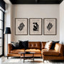 Display the trio as a cohesive triptych or style each piece individually. Available as a framed poster or an unframed print, this set suits modern, loft, japandi, and minimalist interiors—ideal for living rooms, bedrooms, offices, and design-led studios.