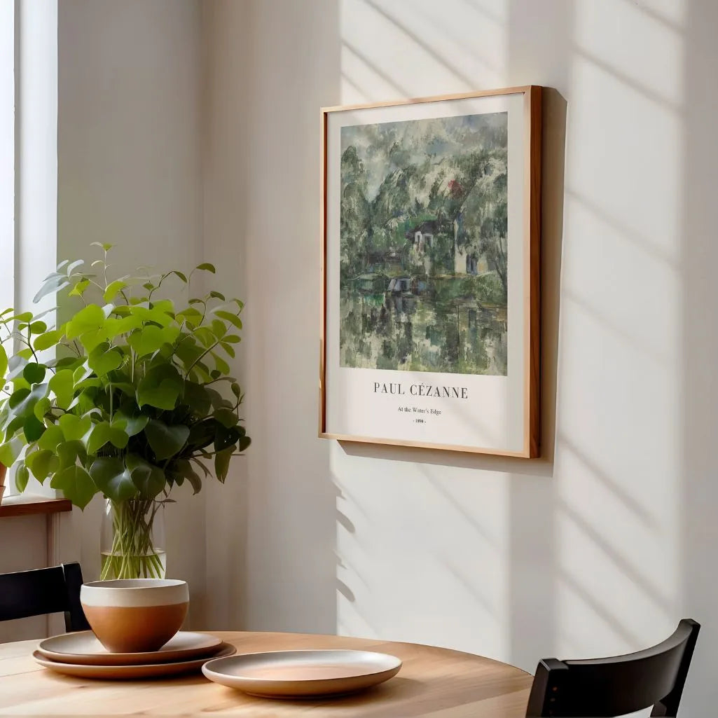 Paul Cézanne’s At the Water’s Edge is a serene waterside scene where light, air, and reflection become the real subject. Soft, broken brushwork suggests humid atmosphere and shimmering greens, blending trees, sky, and water into a calm, poetic whole. Balancing observation with emotion, this post-impressionist wall art feels timeless and restorative—perfect for modern classic, japandi, minimalist, or art déco interiors. Choose it as a framed poster or an unframed print to bring a gentle sense of depth and quiet sophistication to your living room, bedroom, or office.